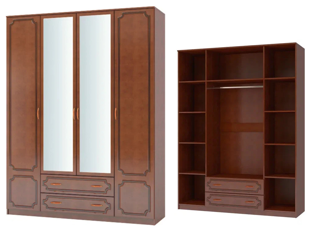 Шкаф ШР-4 платье и бельё с зеркалом Лак Орех