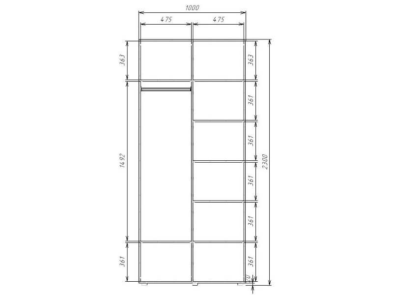 - Шкаф комбинированный с полками и 1 штангой Гранд ГШК/1-23-10-33