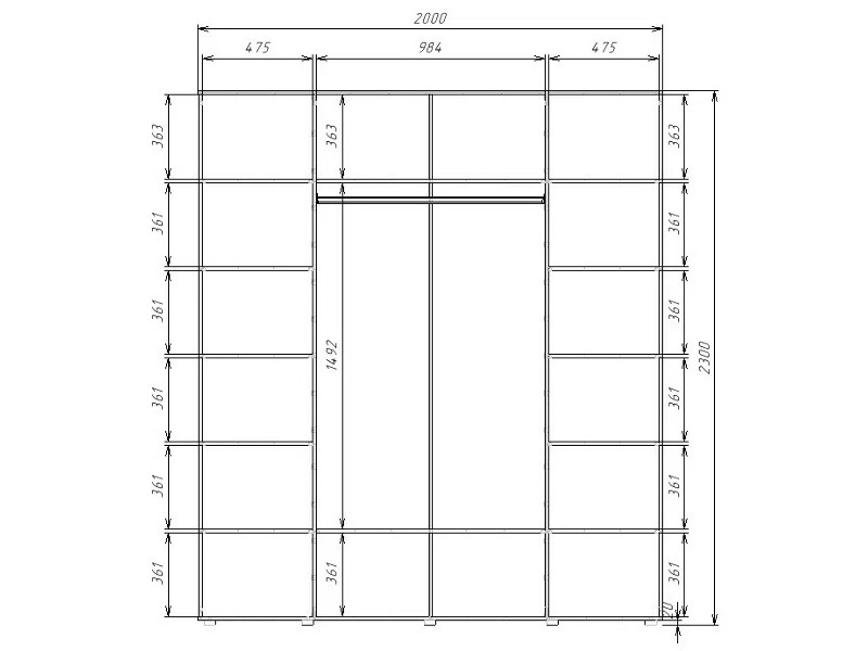 - Шкаф комбинированный с полками по краям и 1 штангой в центре Гранд ГШК/1-23-20-3333