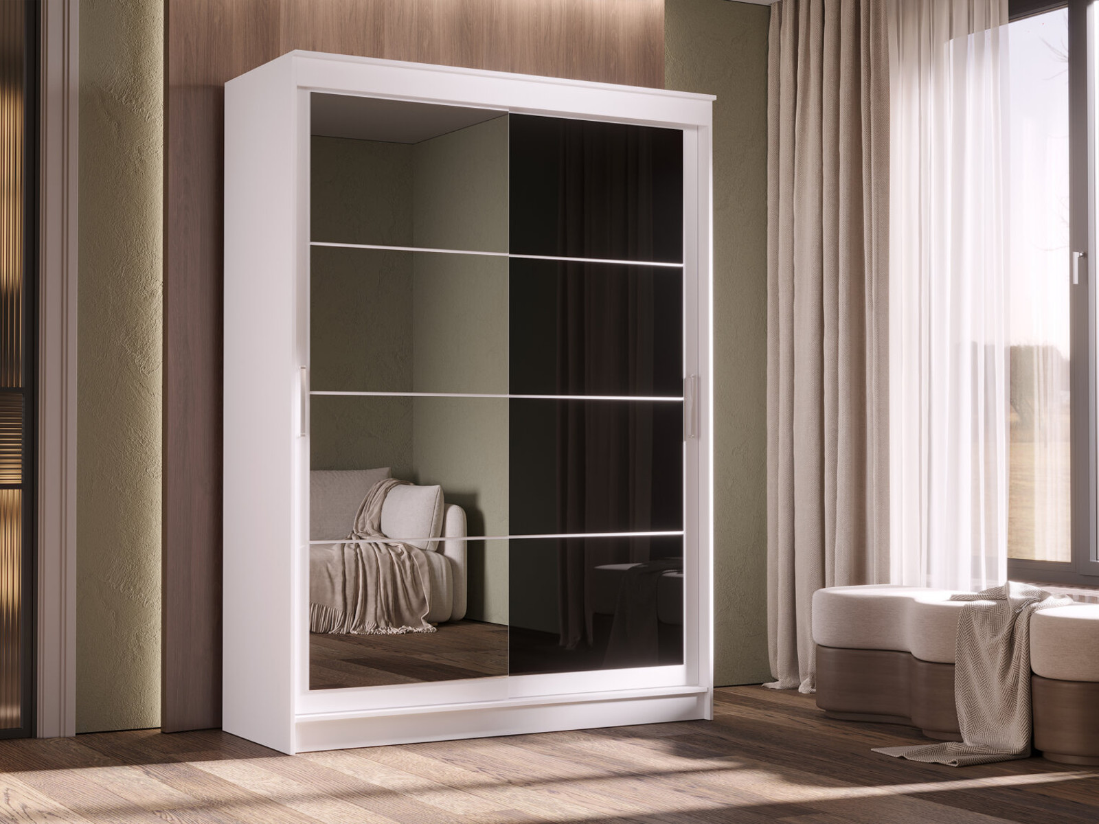 - Шкаф-купе Гранд-1 1600 Белый гладкий-двери Зеркало-Лакобель черный
