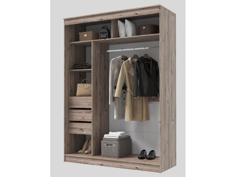 - Шкаф-купе Гранд-1 1600 Дуб Горный-двери Зеркало-Лакобель черный