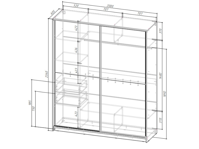 Габаритные размеры: Д.2000 х В.2360 х Г.605 мм.