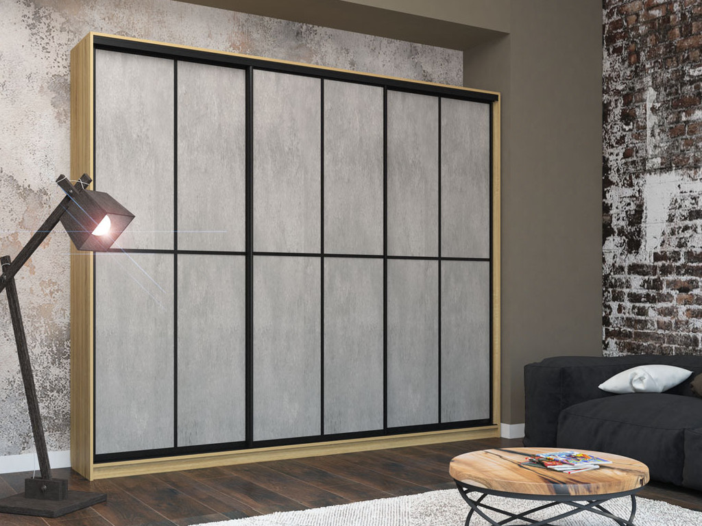 Шкаф-купе Лофт Шк30-47 3000 3 двери глубина 470 фасад МДФ бетон +