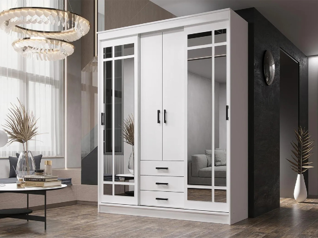 - Шкаф купе Лорд белый гладкий