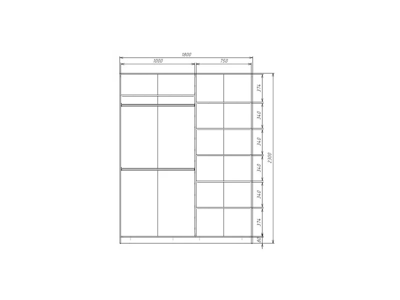 - 2 двери верхняя и нижняя вставка – Зеркало, центральная – ДСП 10 мм.