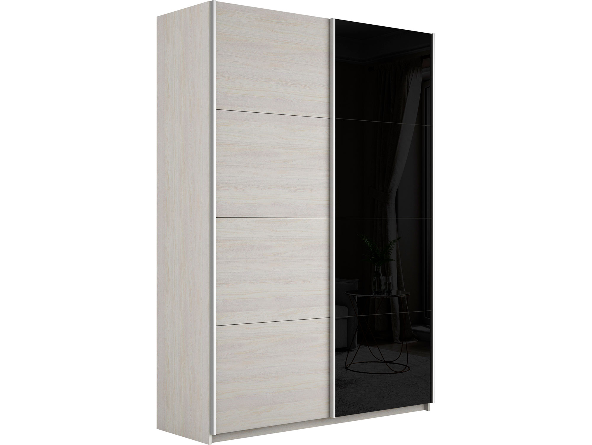 - Шкаф-купе Прайм 2-х дверный 1200 ДСП/Стекло Черное Ясень Анкор Светлый