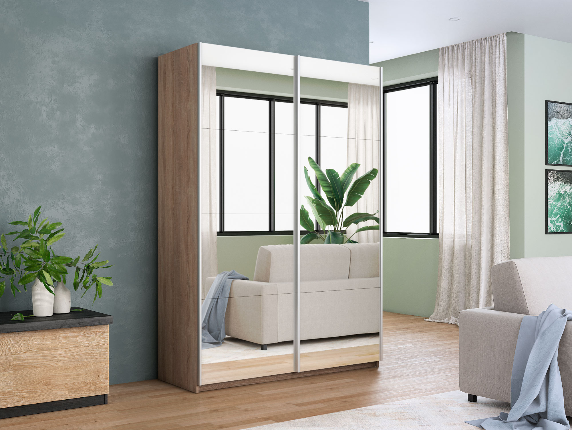 - Шкаф-купе Прайм 2-х дверный 1200 два зеркала Сонома
