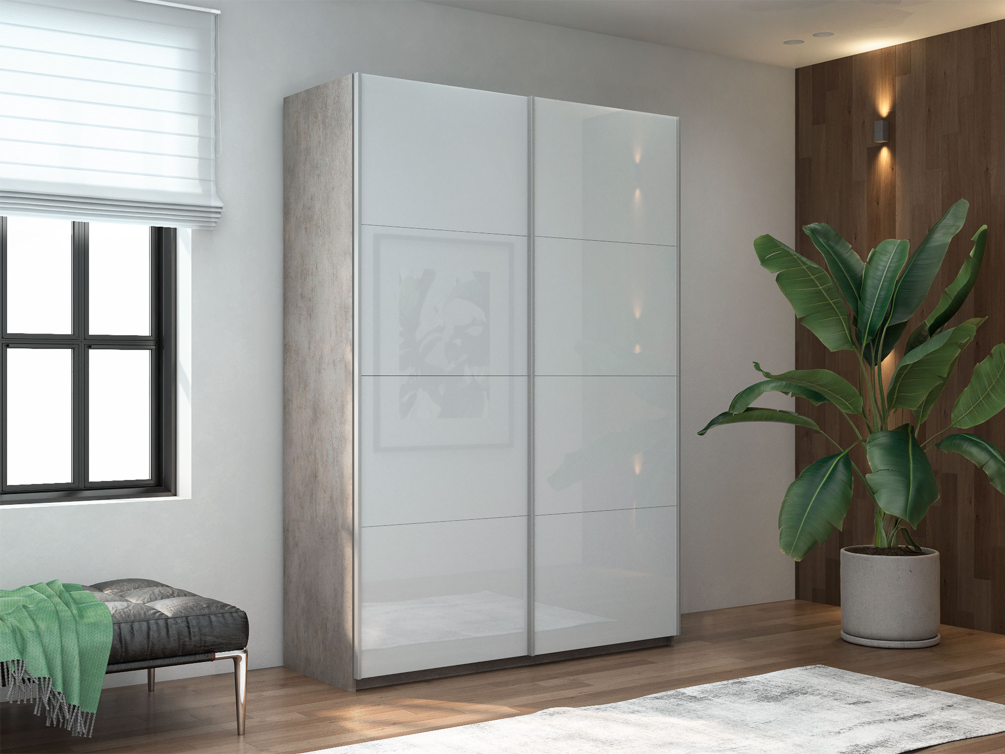 - Шкаф-купе Прайм 2-х дверный 1200 Стекло Белое Бетон