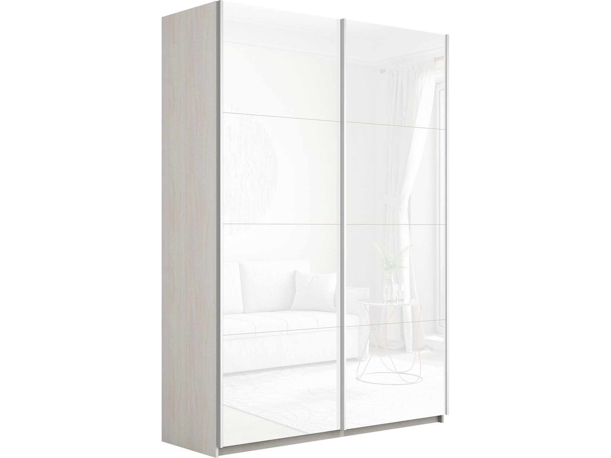Шкаф-купе Прайм 2-х дверный 1200 Стекло Белое Ясень Анкор Светлый