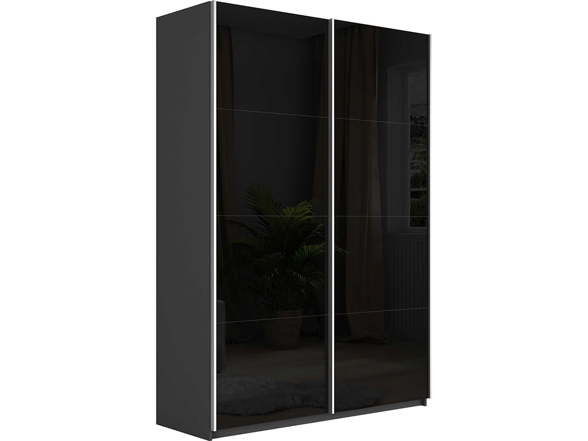 - Шкаф-купе Прайм 2-х дверный 1200 Стекло Черное Серый Диамант
