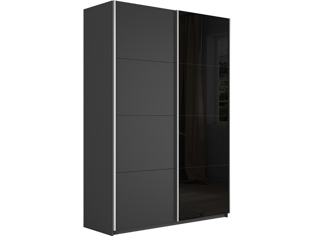 - Шкаф-купе Прайм 2-х дверный 1400 ДСП/Стекло Черное Серый Диамант