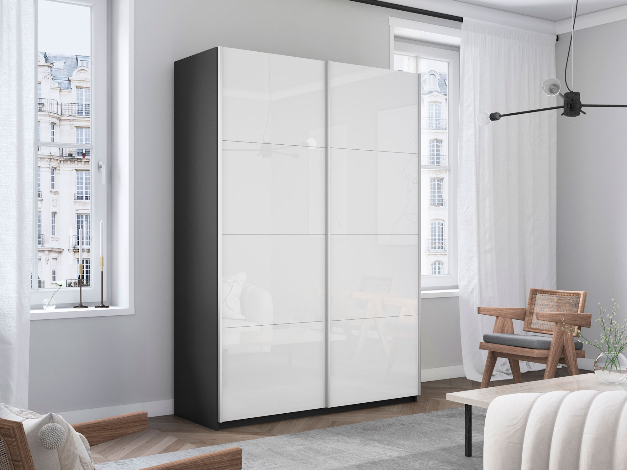 Шкаф-купе Прайм 2-х дверный 1400 Стекло Белое Серый Диамант