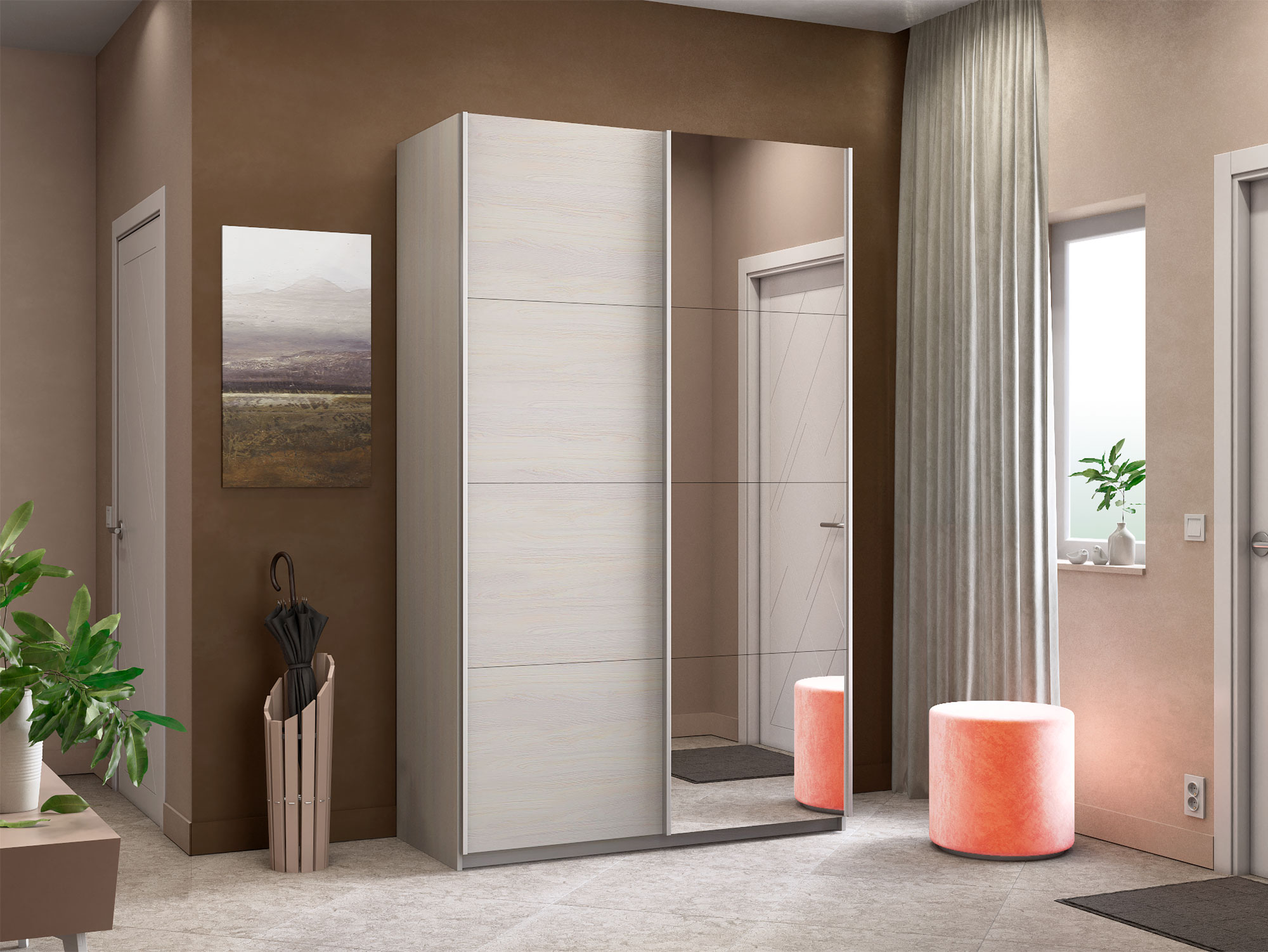 Шкаф-купе Прайм 2-х дверный 1400 Зеркало/ДСП Ясень Анкор Светлый