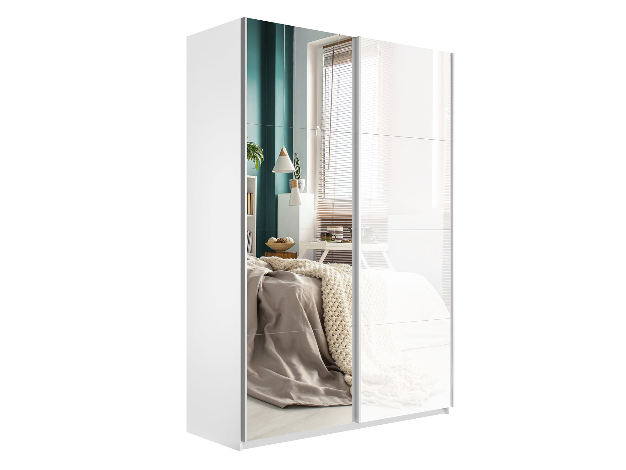 - Шкаф-купе Прайм 2-х дверный 1400 Зеркало/Стекло Белое Белый Снег
