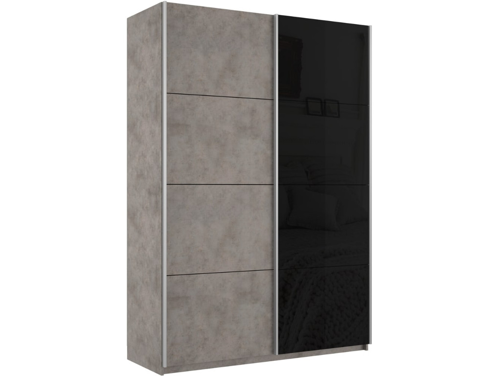 - Шкаф-купе Прайм 2-х дверный 1600 ДСП/Стекло Черное Бетон
