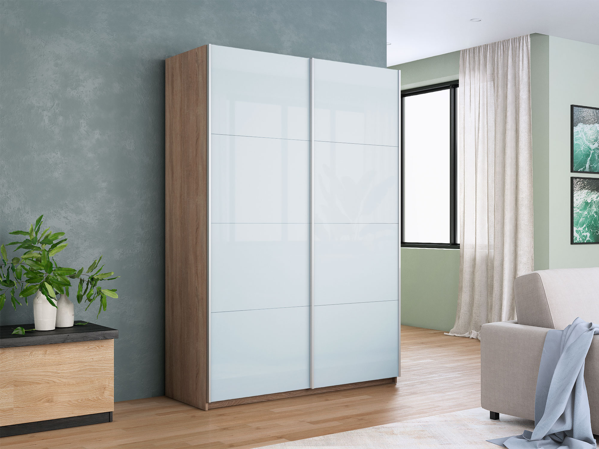 - Шкаф-купе Прайм 2-х дверный 1600 Стекло Белое Сонома