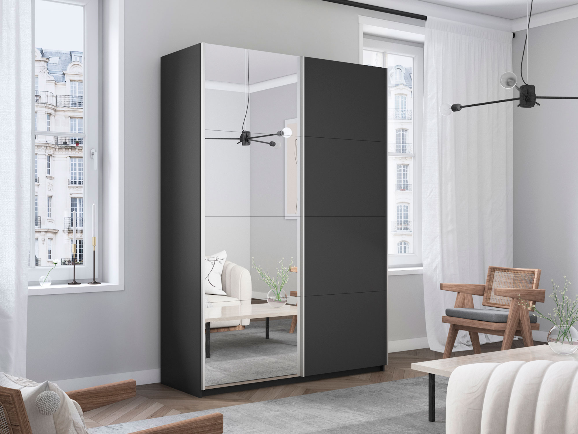 - Шкаф-купе Прайм 2-х дверный 1600 Зеркало/ДСП Серый Диамант