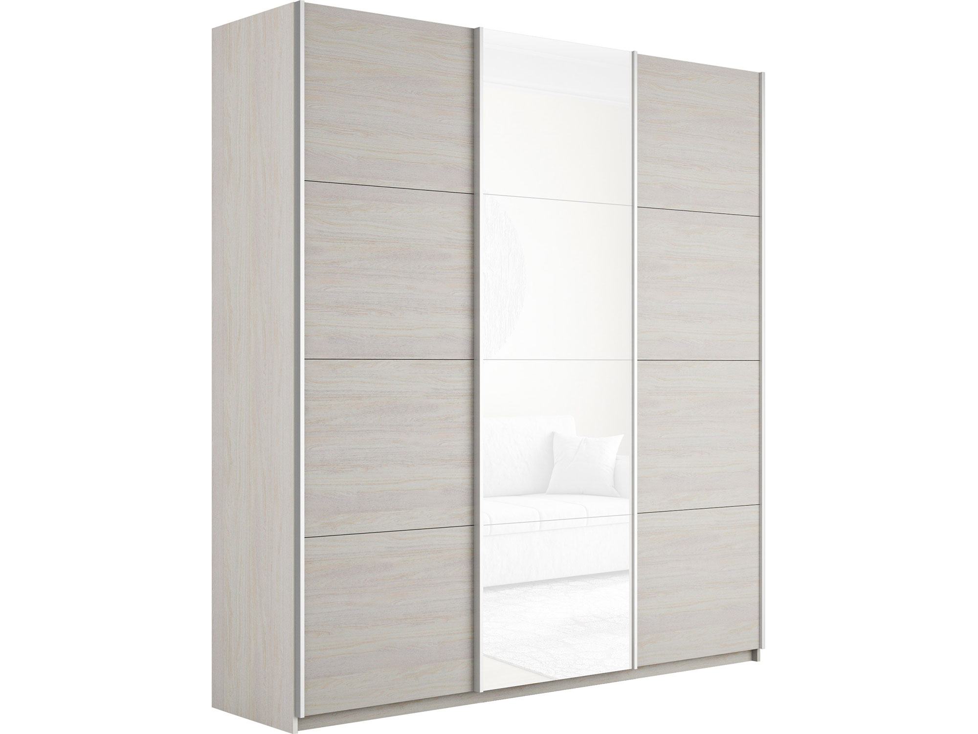 - Шкаф-купе Прайм 3-х дверный 1800 ДСП/Стекло Белое/ДСП Ясень Анкор Светлый