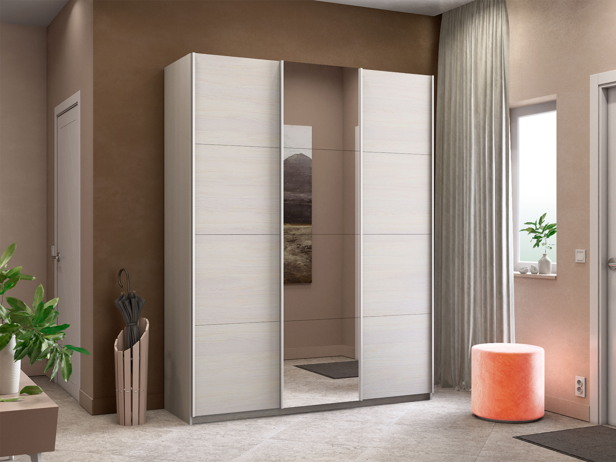 - Шкаф-купе Прайм 3-х дверный 1800 ДСП/зеркало/ДСП Ясень Анкор Светлый