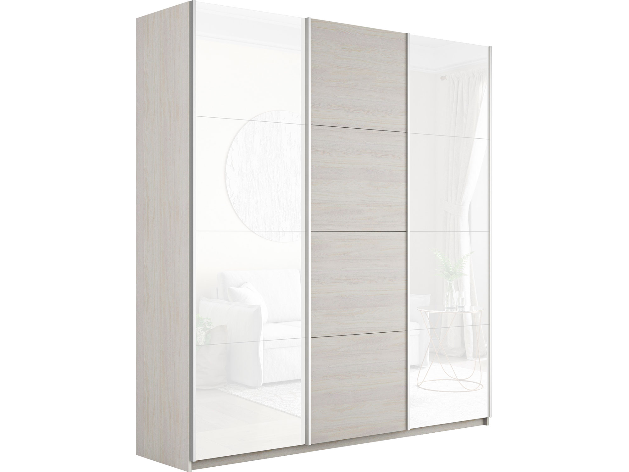 Шкаф-купе Прайм 3-х дверный 1800 два Стекла Белые/ДСП Ясень Анкор Светлый
