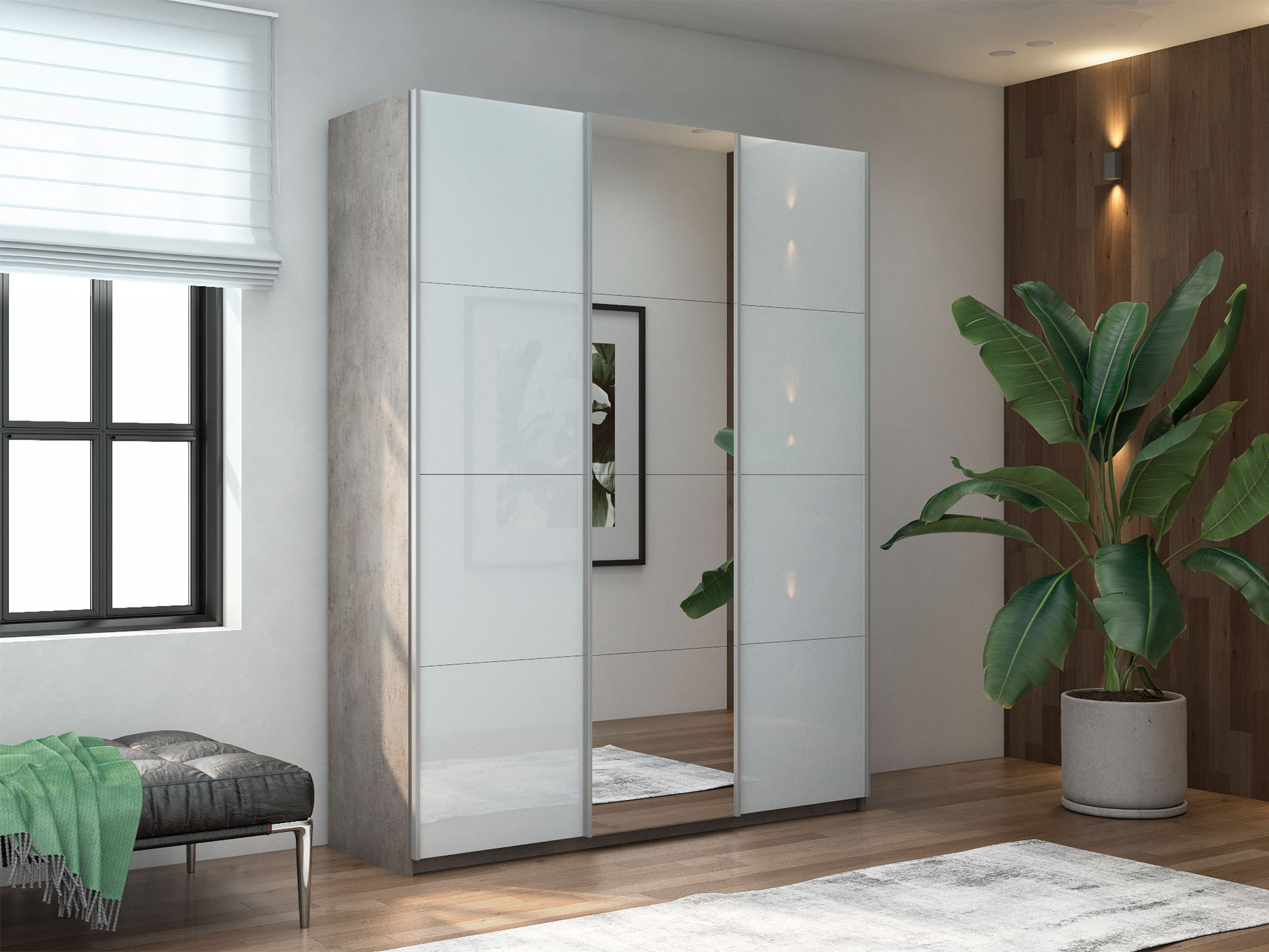 Шкаф-купе Прайм 3-х дверный 1800 два Стекла Белые/Зеркало Бетон