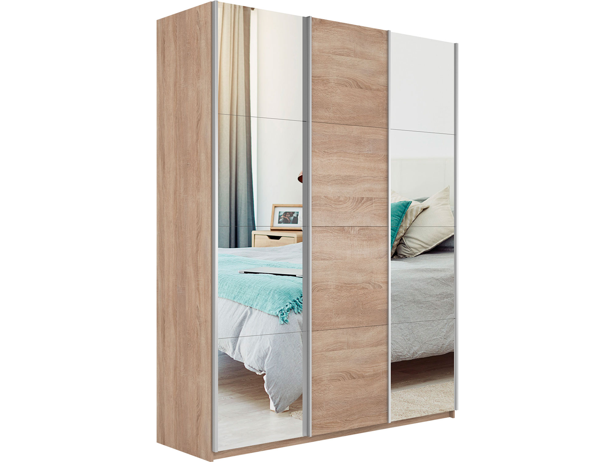 Шкаф-купе Прайм 3-х дверный 1800 два Зеркала/ДСП Сонома
