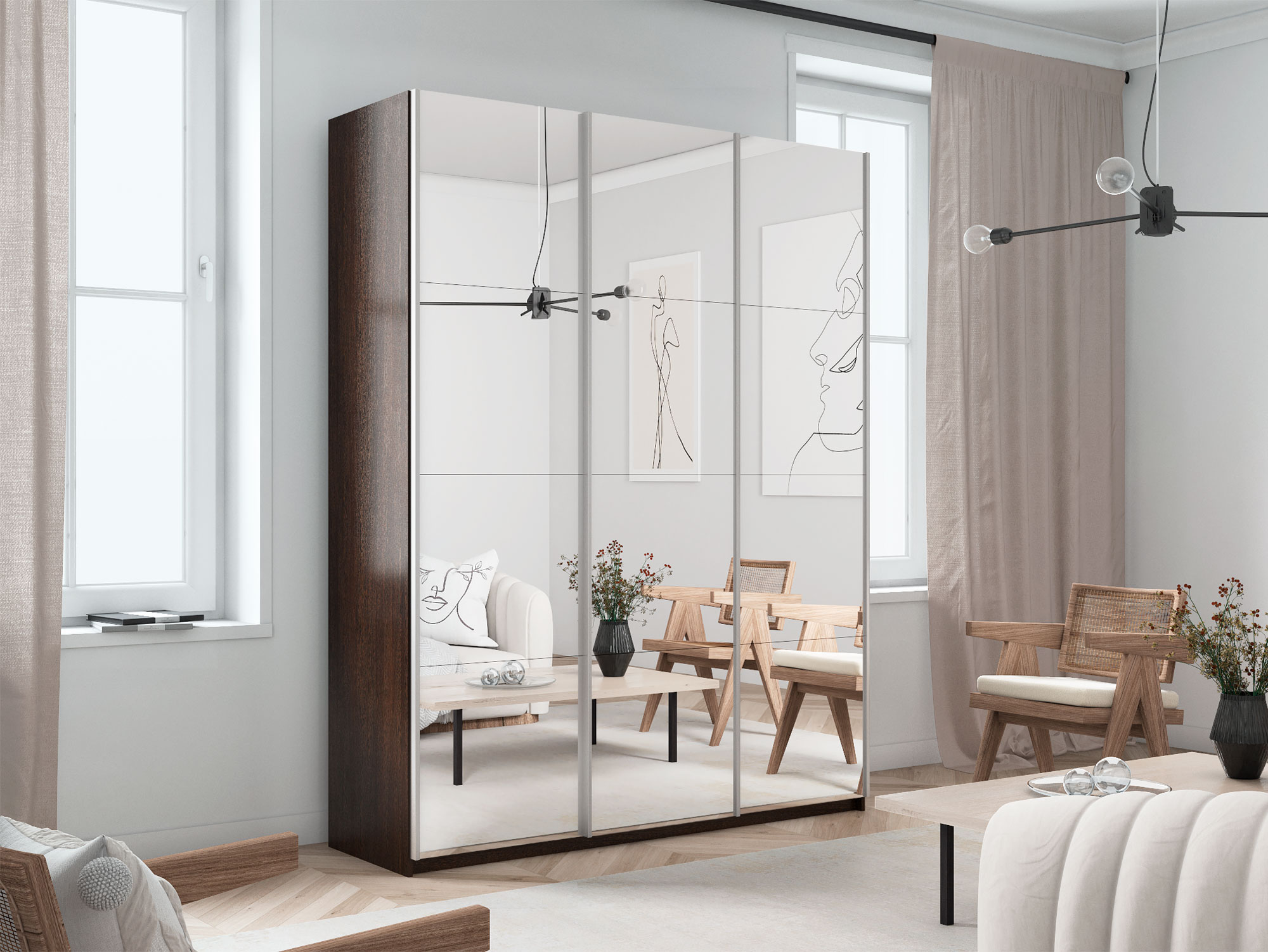 - Шкаф-купе Прайм 3-х дверный 1800 три зеркала Венге