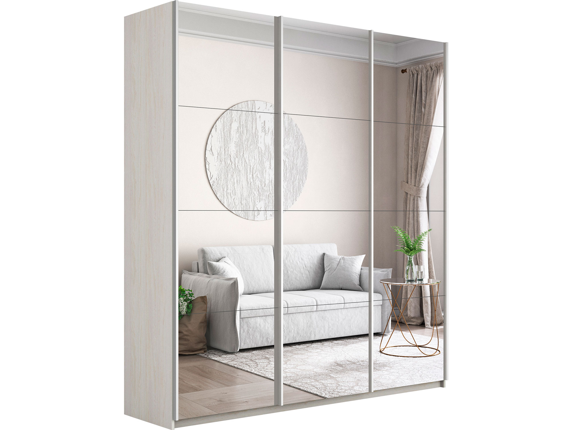 - Шкаф-купе Прайм 3-х дверный 1800 три зеркала Ясень Анкор Светлый