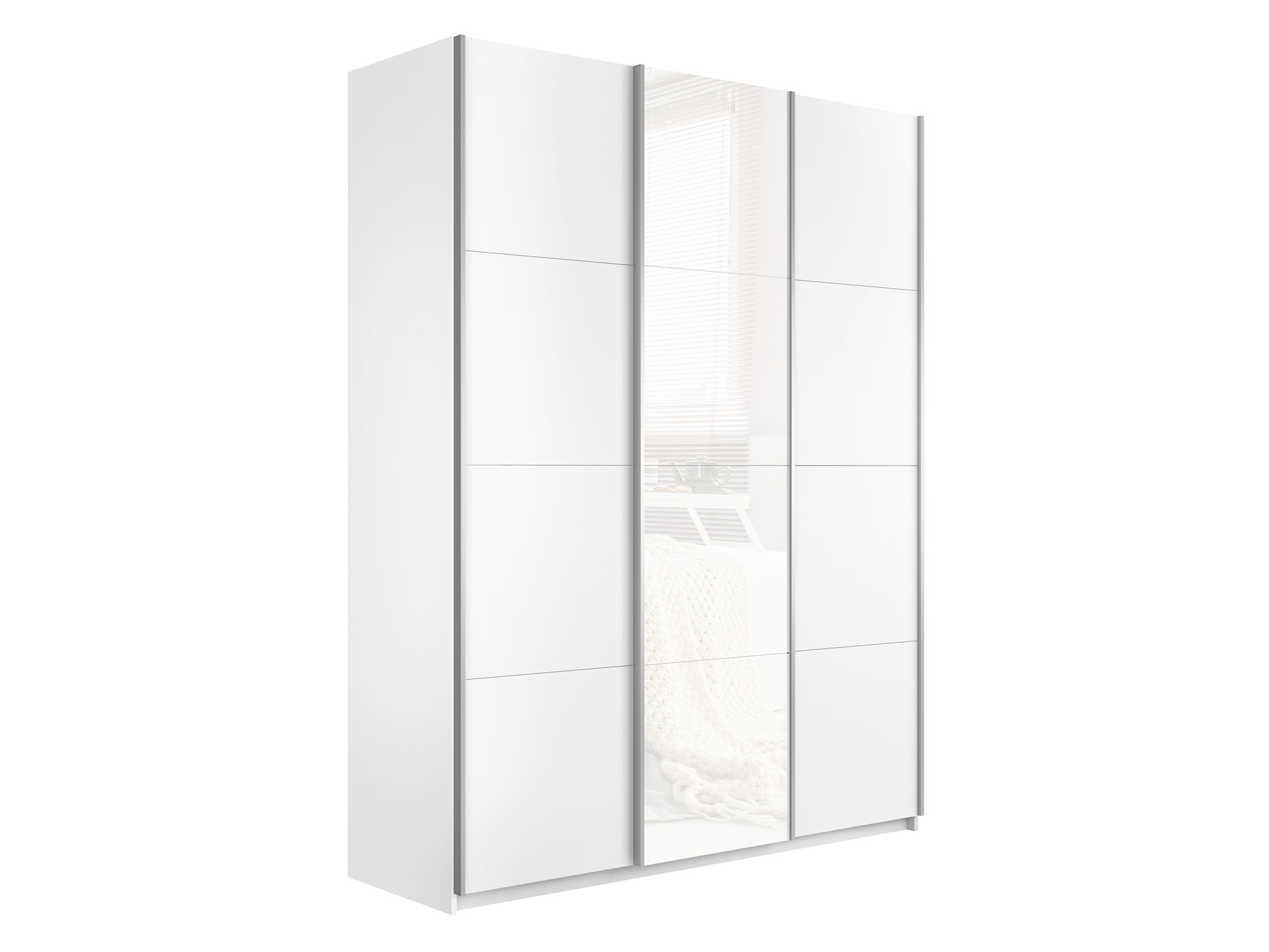 - Шкаф-купе Прайм 3-х дверный 2100 ДСП/Стекло Белое/ДСП Белый Снег