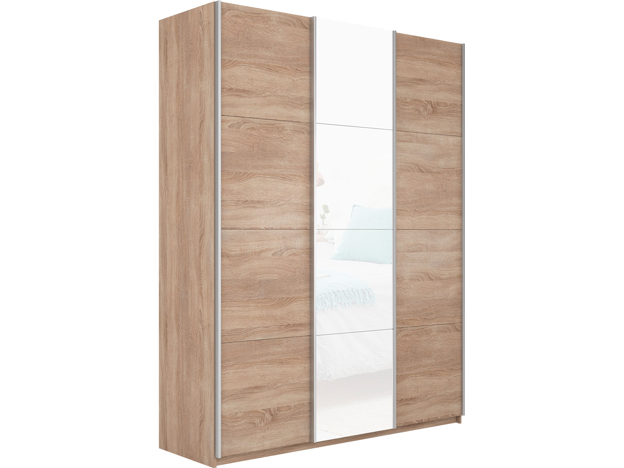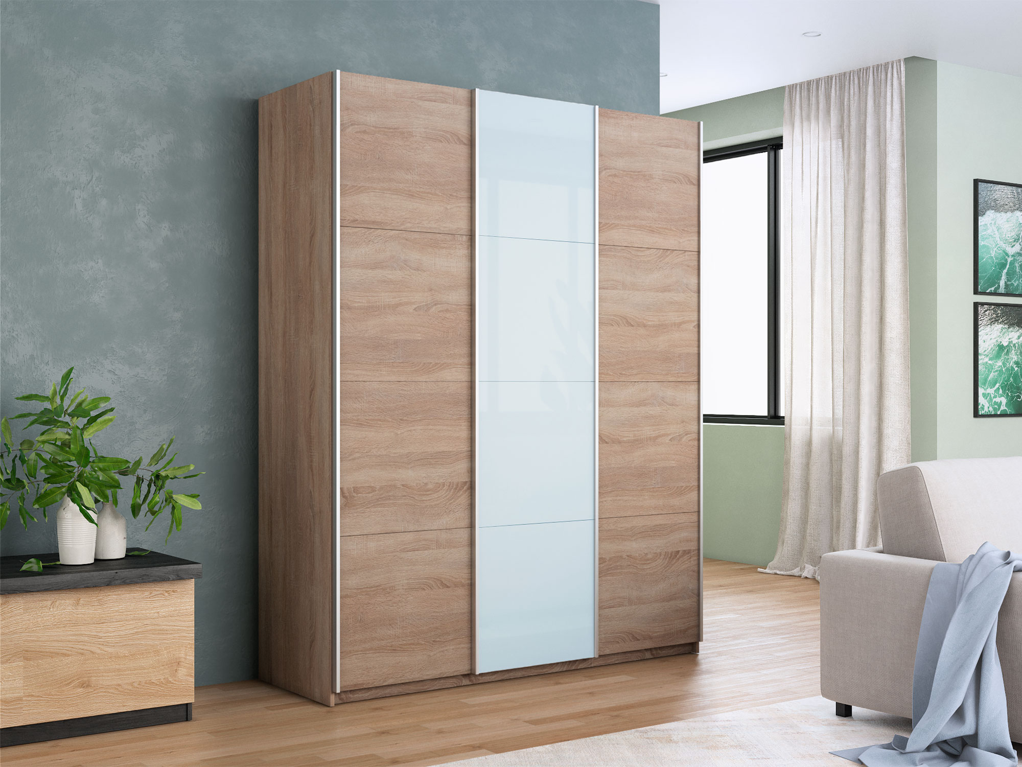- Шкаф-купе Прайм 3-х дверный 2100 ДСП/Стекло Белое/ДСП Сонома