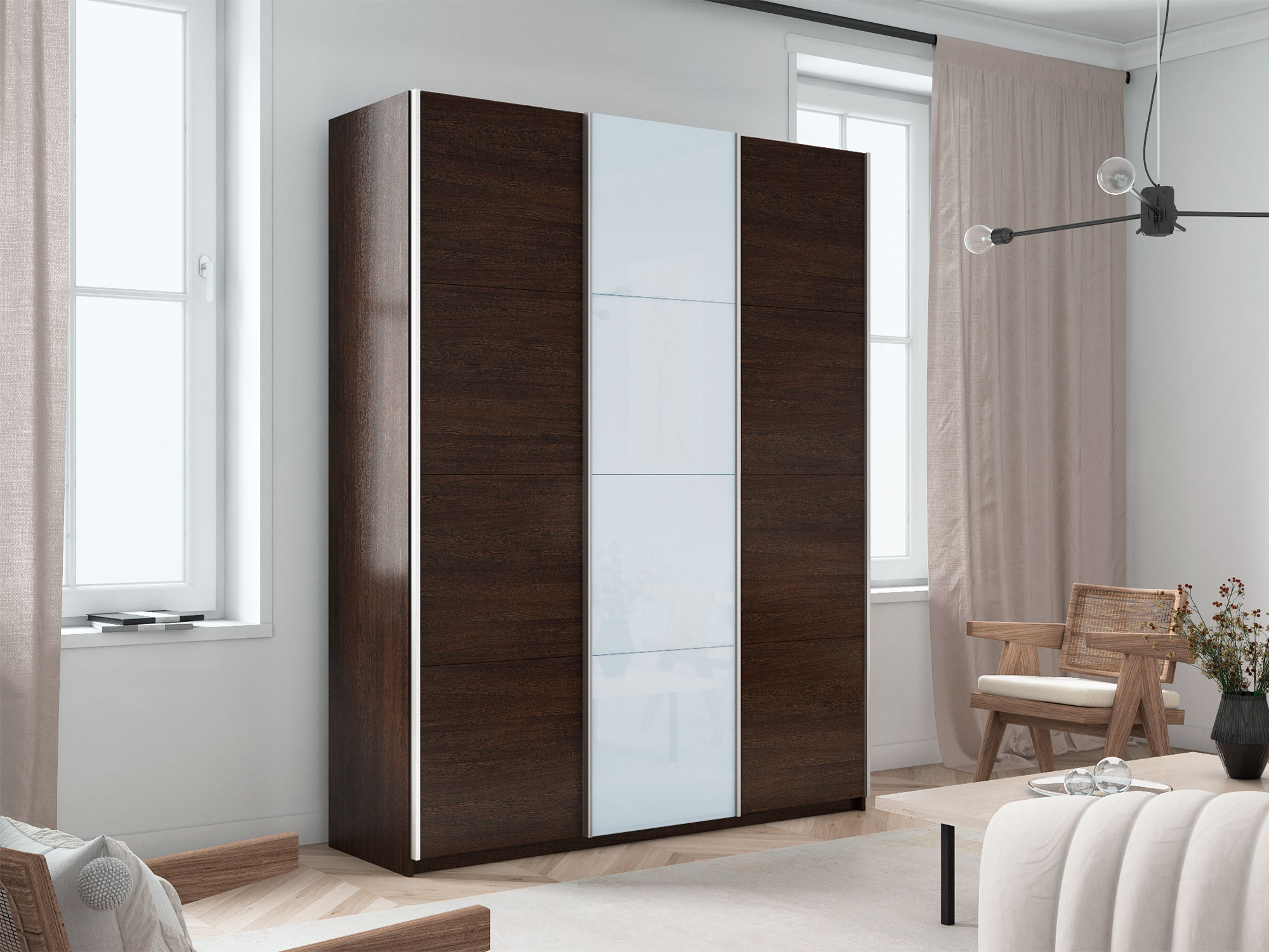 - Шкаф-купе Прайм 3-х дверный 2100 ДСП/Стекло Белое/ДСП Венге