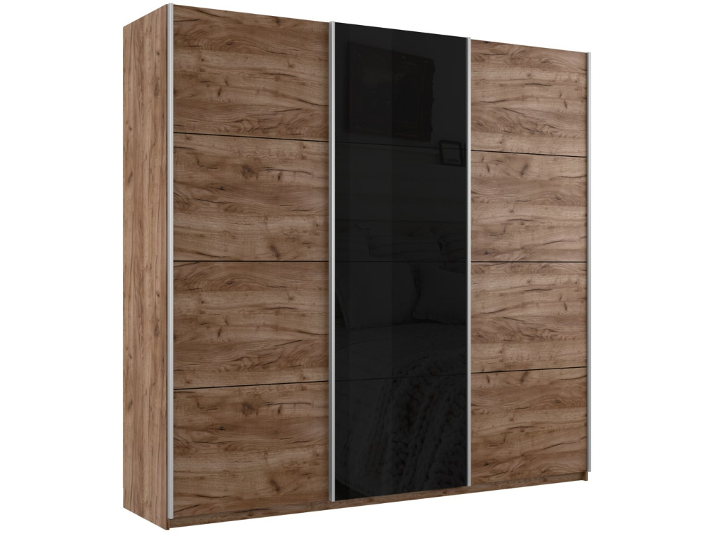 - Шкаф-купе Прайм 3-х дверный 2100 ДСП/Стекло Черное/ДСП Крафт табачный