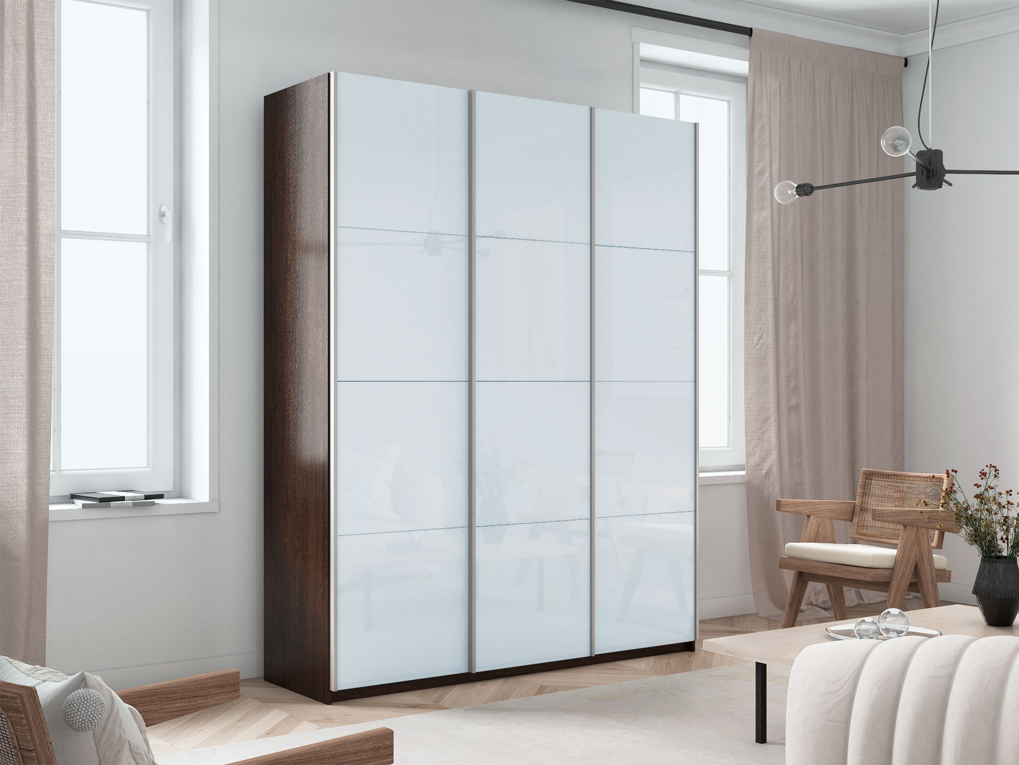 - Шкаф-купе Прайм 3-х дверный 2100 три стекла белые Венге