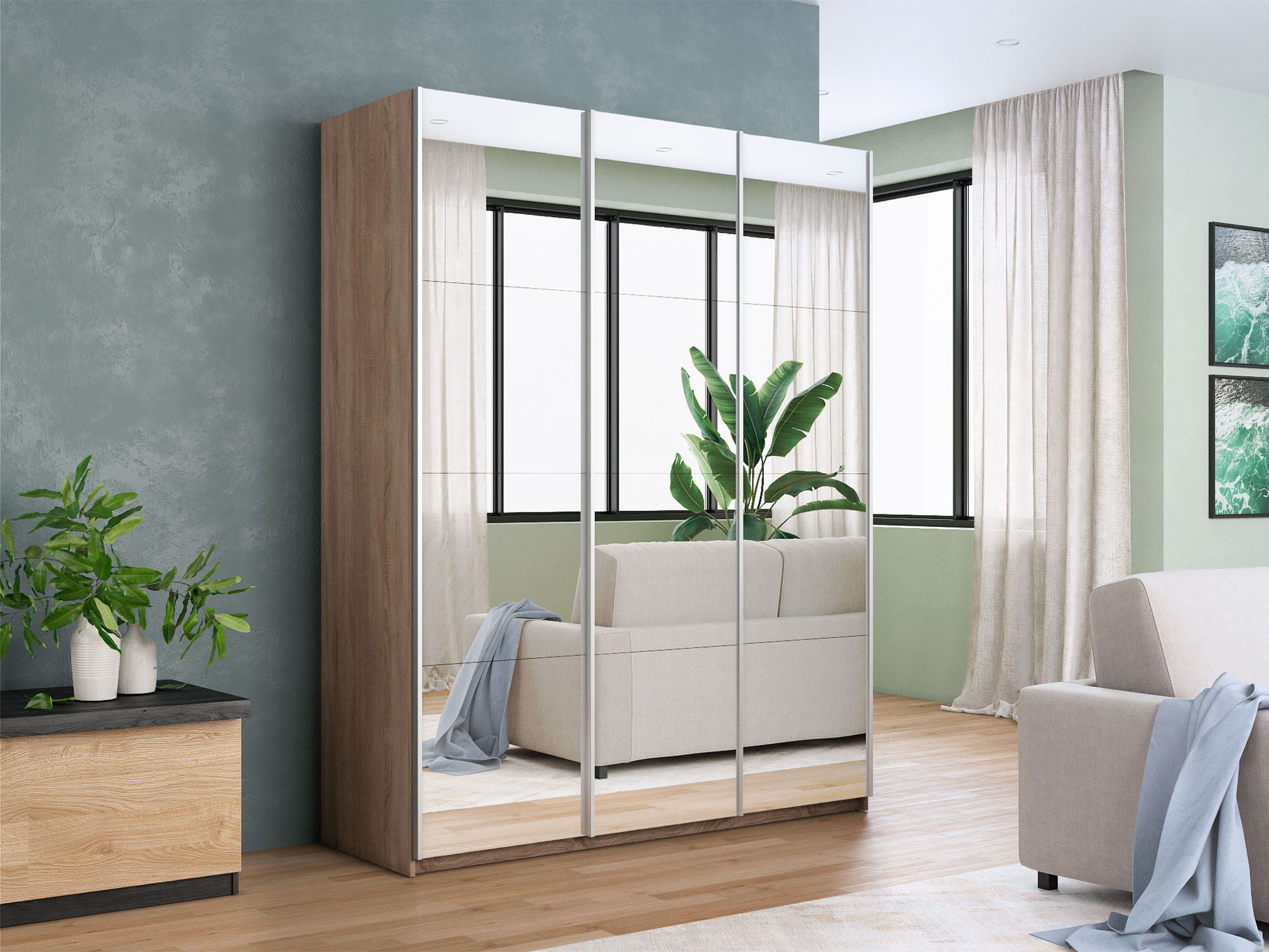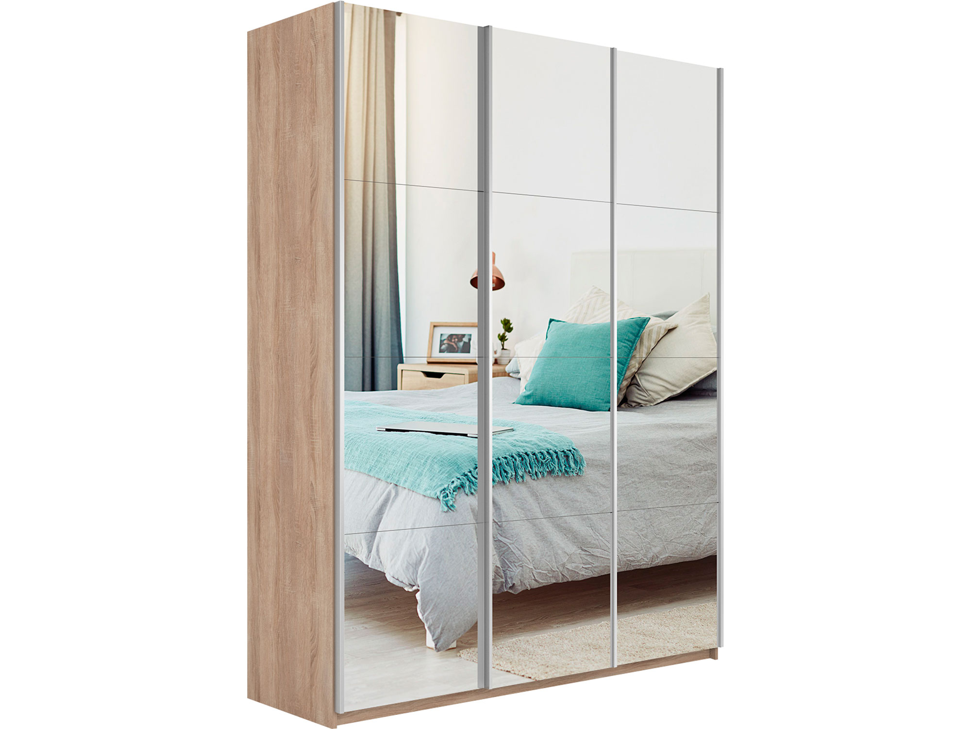- Шкаф-купе Прайм 3-х дверный 2100 три зеркала Сонома