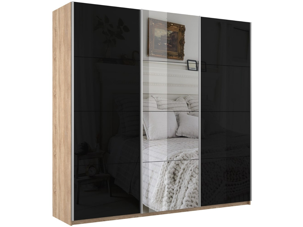 - Шкаф-купе Прайм 3-х дверный 2100 Зеркало/Стекло Черное/Зеркало Сонома