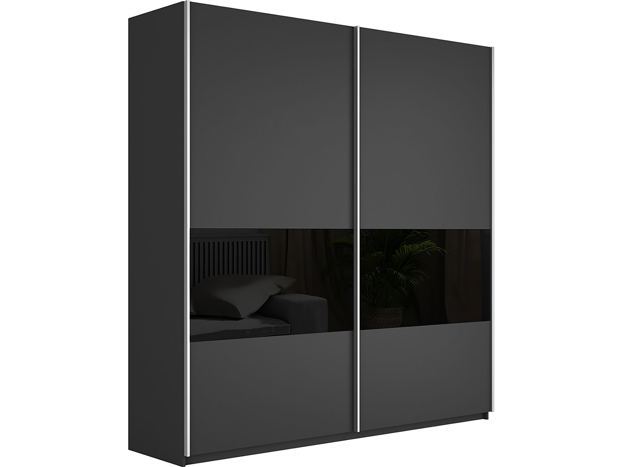 - Шкаф-купе Прайм Широкий 2-х дверный ДСП/вставки Стекло Черное Серый Диамант