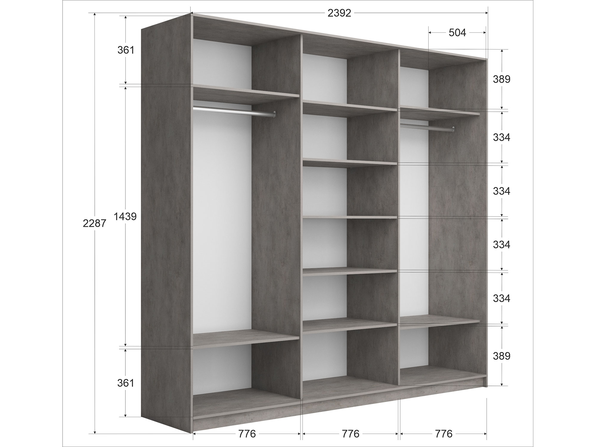 Шкаф-купе Прайм Широкий 3-х дверный ДСП/вставки Стекло Черное Бетон