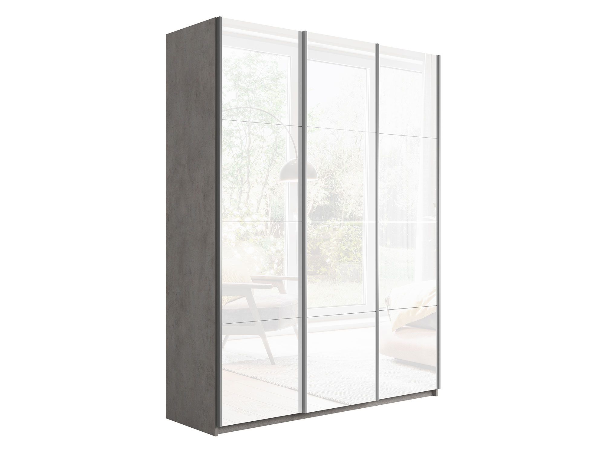 Шкаф-купе Прайм Широкий 3-х дверный три белых стекла Бетон