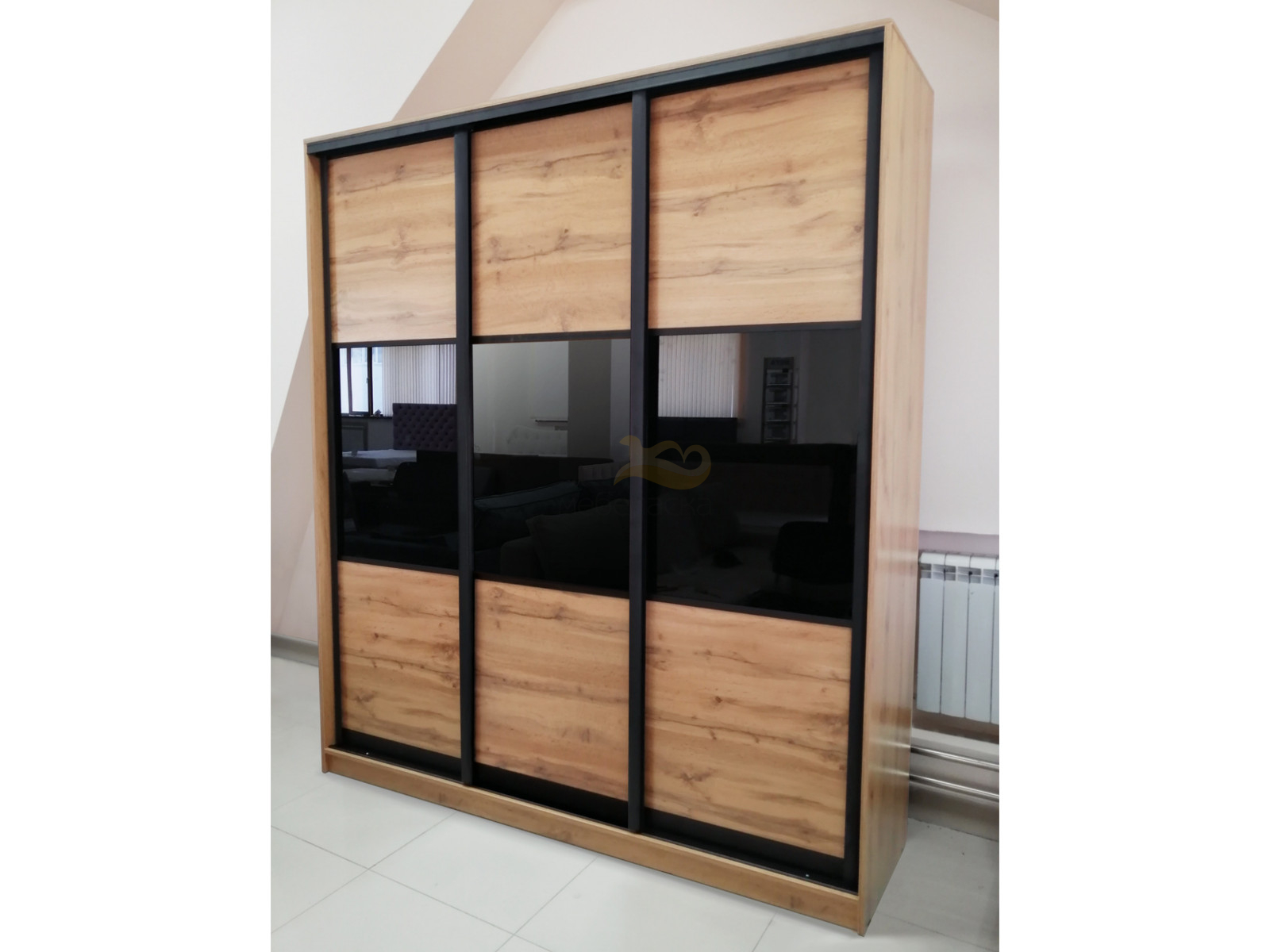 - Шкаф купе трехдверный 3 вставка стекло Дуб вотан 2700 мм