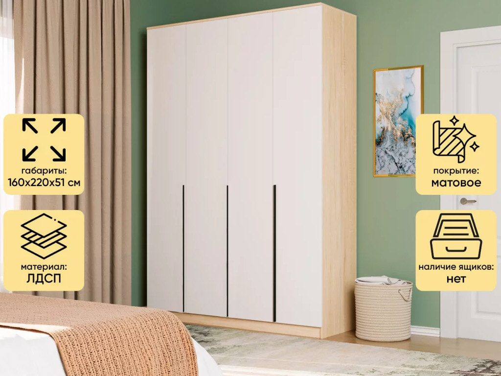 Шкаф Монблан New распашной 1600 4-х дверный Дуб сонома-Белый Шагрень