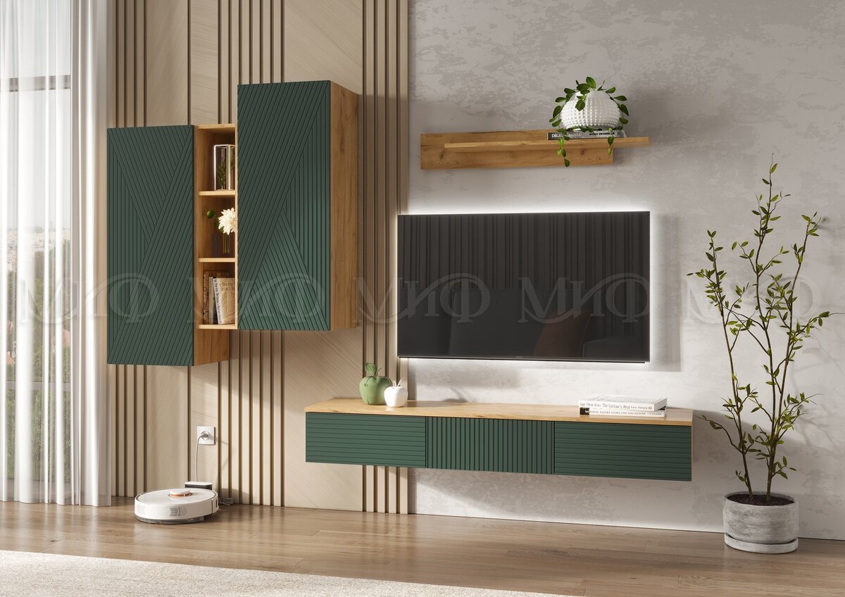 - Шкаф подвесной комбинированный Флэш Браш Мени Грин, Дуб Крафт