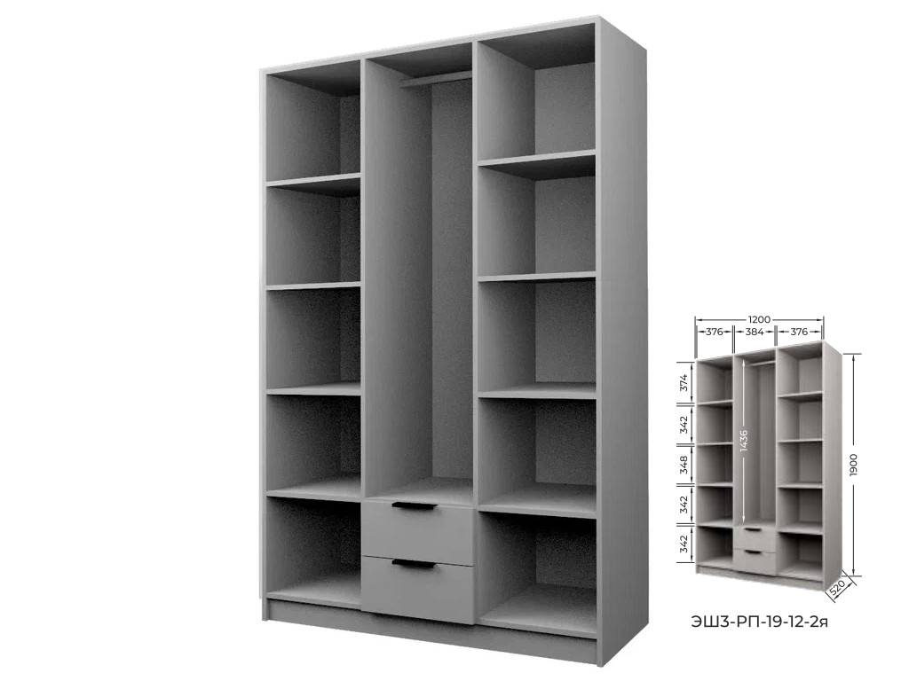 Шкаф с 2 ящиками Экон ЭШ3-РП-19-12-2я три зеркала