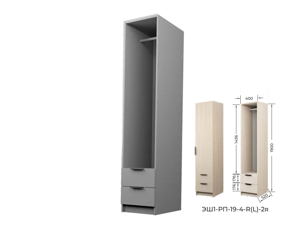 - Шкаф с 2 ящиками со штангой Экон ЭШ1-РП-19-4-R-2я с зеркалом