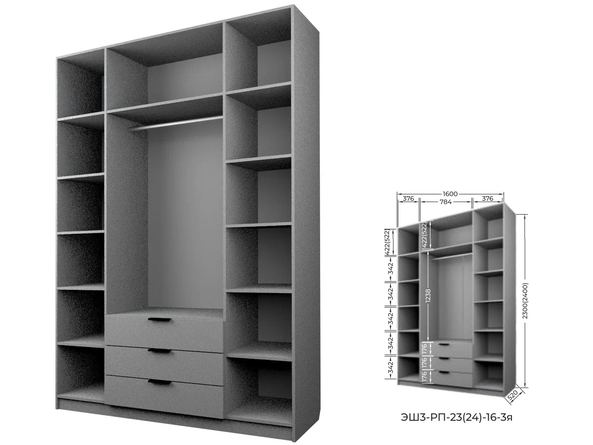 Шкаф с 3 ящиками Экон ЭШ3-РП-23-16-3я