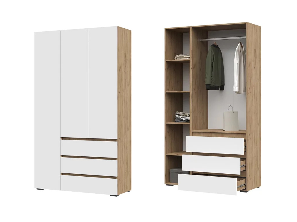 - Шкаф с ящиками Хелен 3-х створчатый ШК 06 Дуб крафт золотой-Белый шагрень