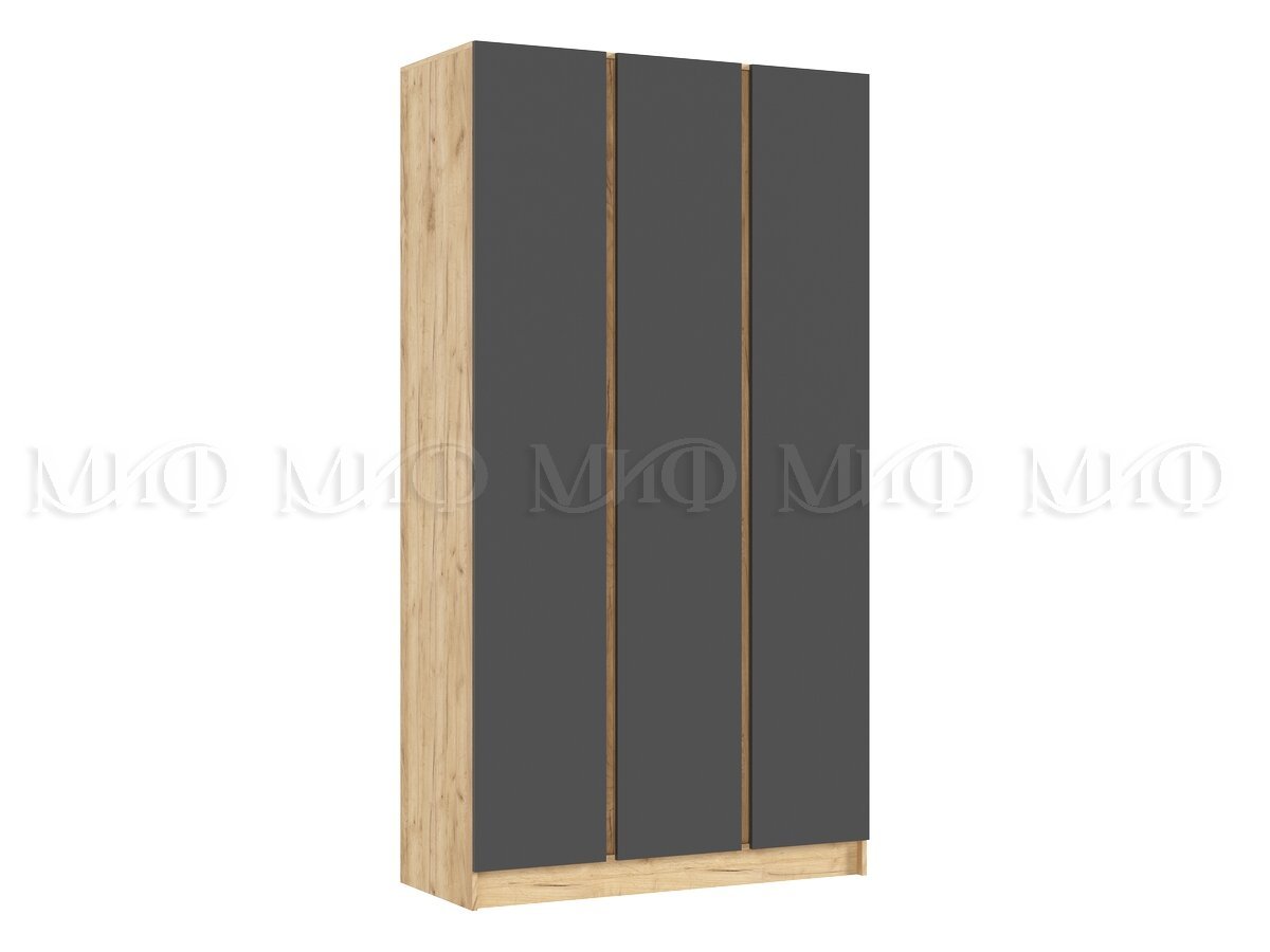 - Шкаф трехстворчатый Келвин (1200) Графит, Дуб Крафт-вставка дуб крафт