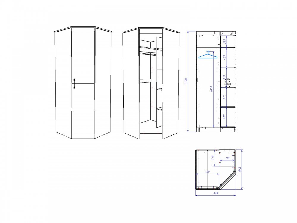 Размер ШхГхВ: 879*879*2194 мм