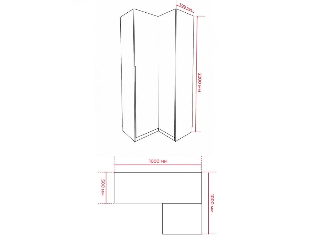 Размер ШxВxГ: 1000/1000*2200*500 мм