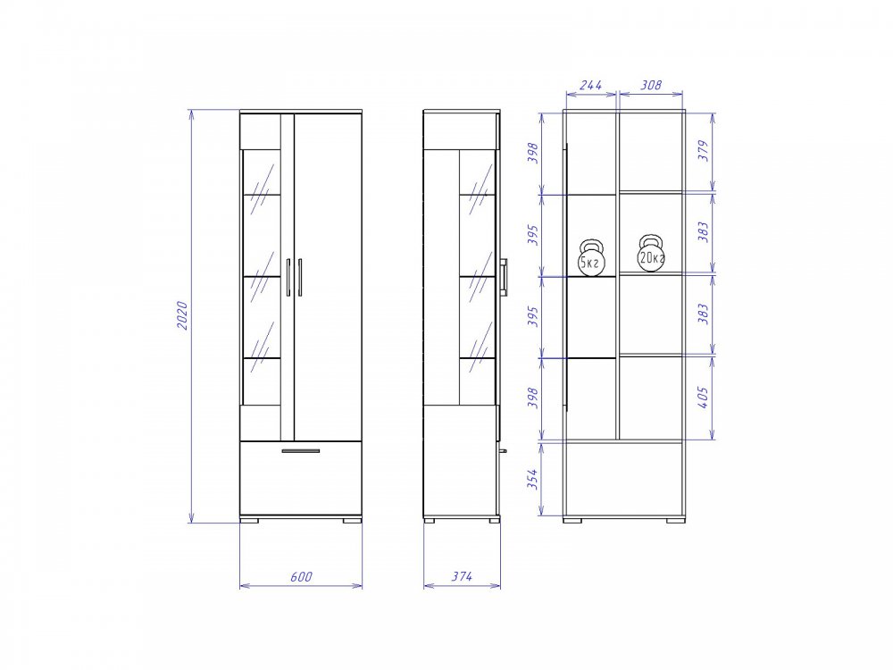 - Пенал Д-3п со стеклом правый Денвер Риббек серый