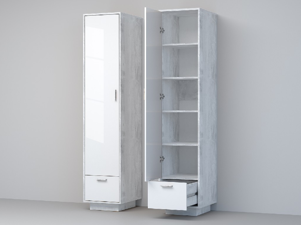 Пенал Эго П-1 бетон светлый/белый глянец на цоколе
